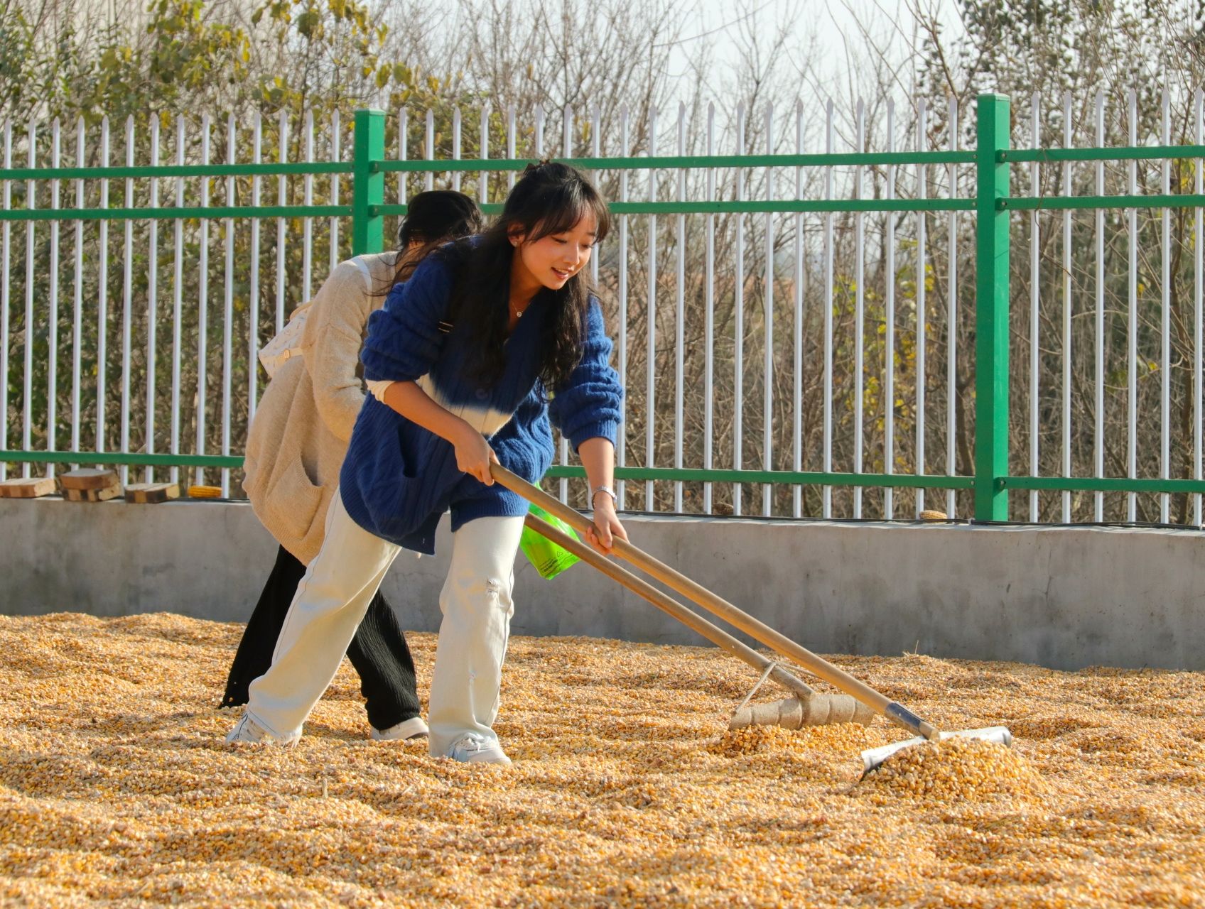 金秋时节,大二同学们接过农耕实践接力棒,投身秋收晒玉米的忙碌中。玉米地里,大家掰玉米、剥苞衣、运秸秆,动作从生疏到娴熟;晾晒场上,将玉米棒均匀铺开,翻晒、扬净,让暖阳烘干水分。劳作中,大家感受丰收的喜悦,领悟“春种一粒粟,秋收万颗子”的深意。集体劳作不仅锤炼了担当精神,更让青春在扎根大地的实践中,绽放出别样光彩。