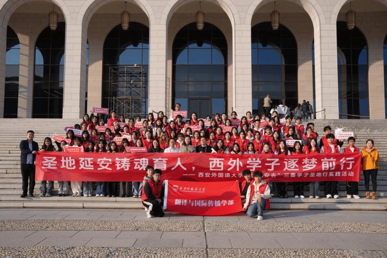 为深入学习贯彻习近平总书记关于弘扬延安精神的重要指示,落实立德树人根本任务,2025年10月25日至26日,学校组织翻译与国际传播学部百名青年学子奔赴革命圣地,开展“到延安去”·三秦学子圣地行实践活动。