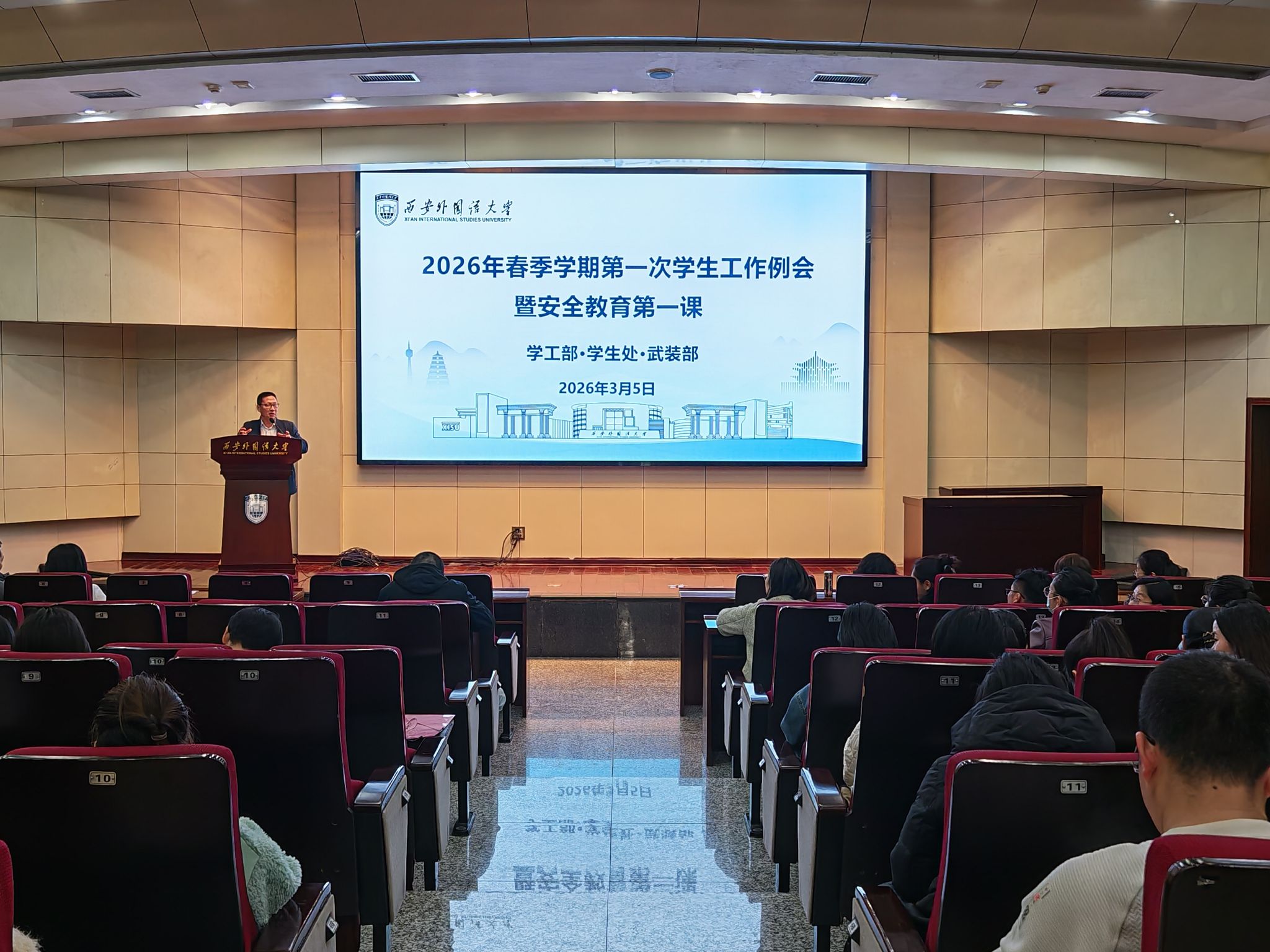 3月5日下午,学工部在校务楼一层报告厅召开2026年春季学期第一次学生工作例会暨安全教育第一...