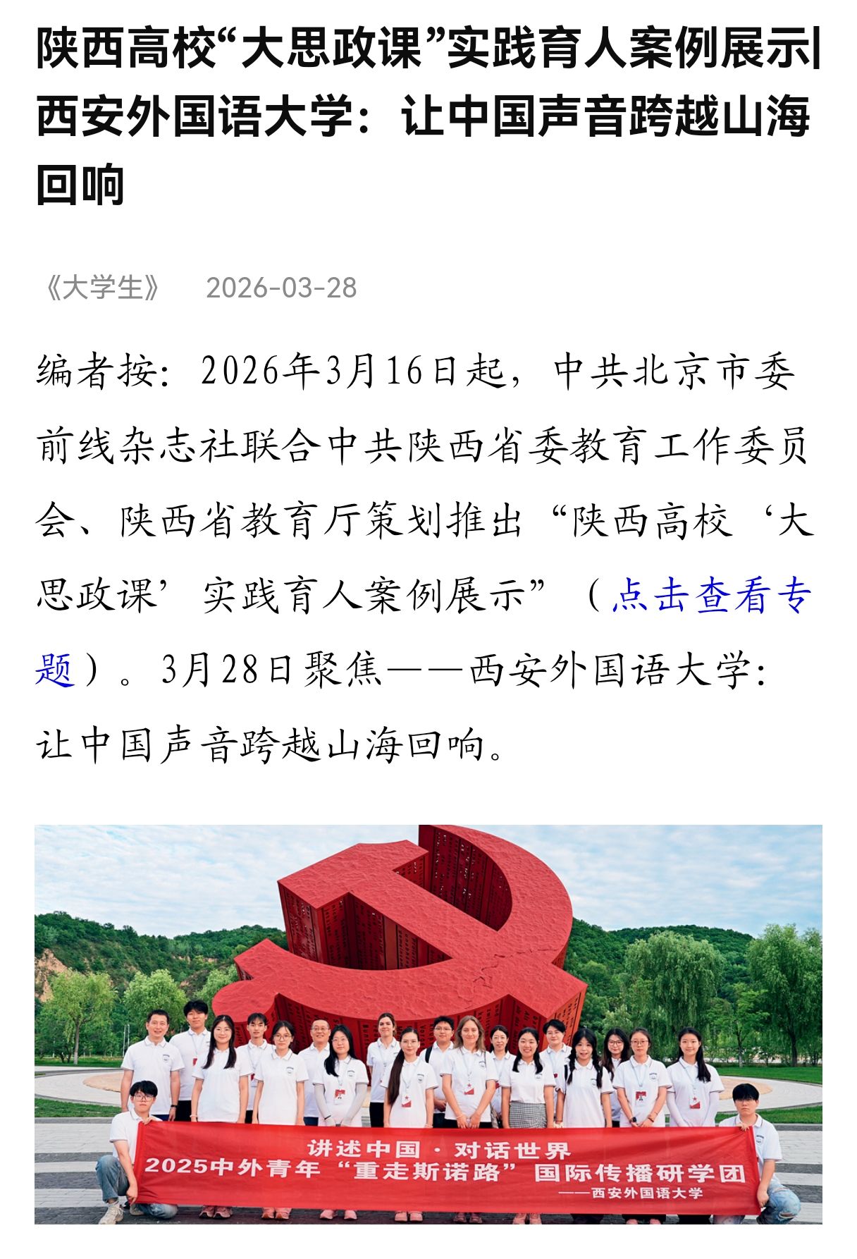 我校实践育人案例《西安外国语大学:让中国声音跨越山海回响》,入选陕西高校“大思政课”实...