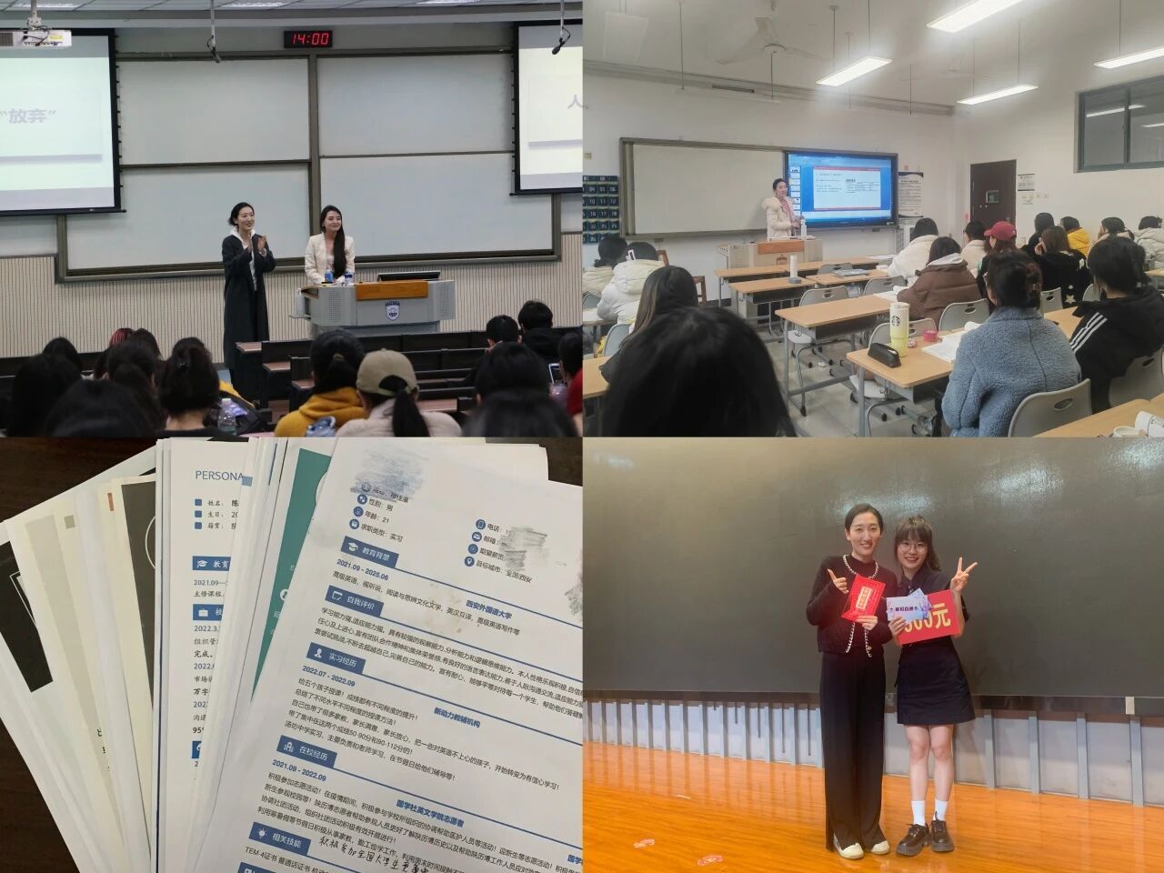 高洋构建了“课程赋能+朋辈引领+校友助力+实践竞赛”四位一体的就业育人体系。在课程赋能方面,连续5年承担《职业生涯规划与就业指导》教学工作,采用小班授课,累计覆盖学生500余人次;在朋辈引领方面,组织“经验分享会”,邀请高年级优秀学生分享学业规划、竞赛参与、实习就业经验;在校友助力方面,搭建“校友就业导师库”,邀请不同领域的优秀校友,开展“国内升学-出国出境-就业创业”系列专题讲座,覆盖学生超2000人次;在实践竞赛方面,指导学生参加学校“超级毕业生”就业能力大赛,累计获校级一等奖、二等奖各一项,本人获评“优秀指导教师”。从育人成效来看,去年所带毕业生中,51人考取国内 “双一流”高校硕士研究生(升学率38.93%),7人通过 “西部计划”、“特岗教师”等项目赴基层就业,1人应征入伍,69人出国出境深造(留学率21.97%),毕业去向落实率达 93.94%。