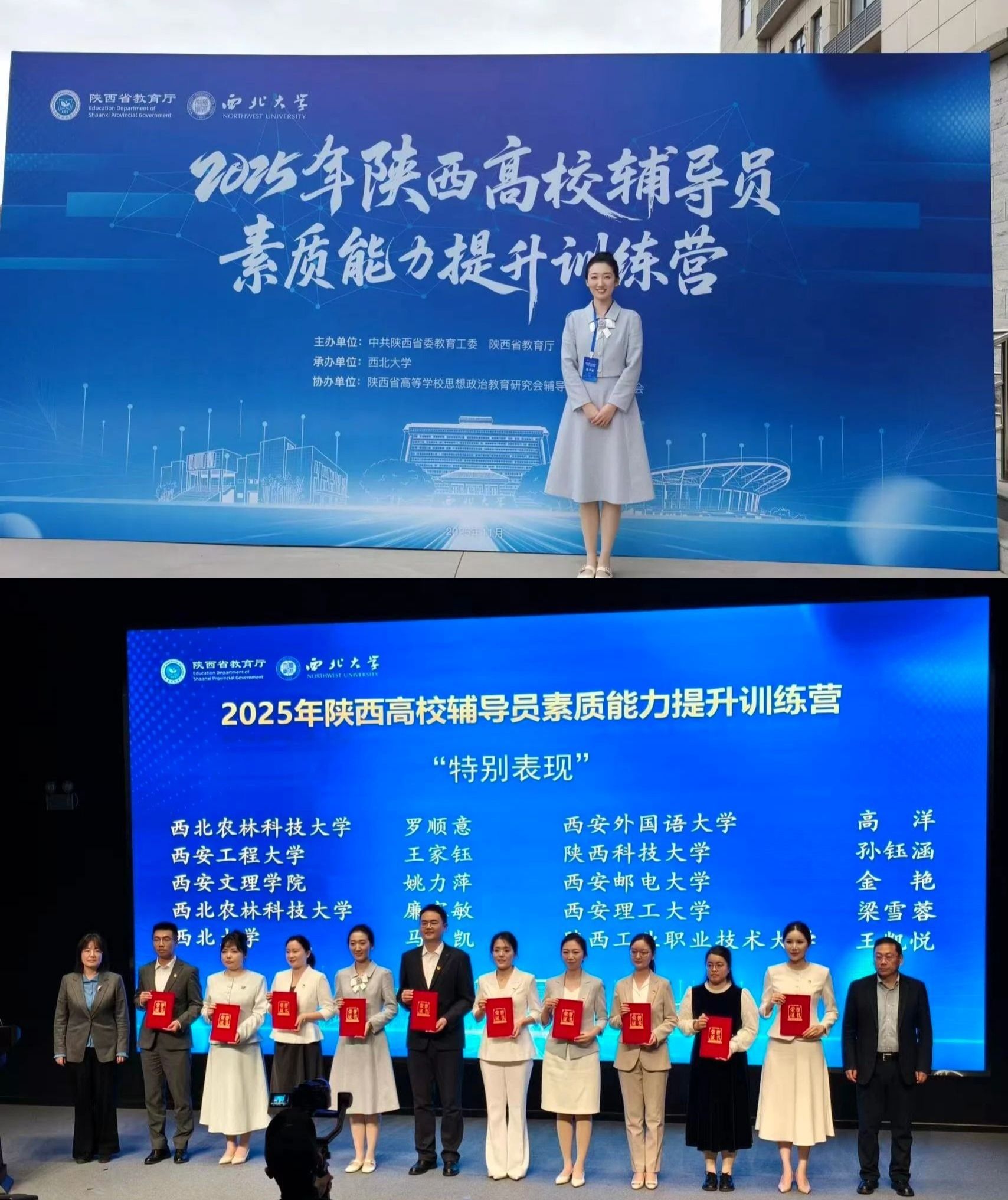 11月5日至7日,由省委教育工委、省教育厅主办的2025年陕西高校辅导员素质能力提升训练营在西北大学长安校区举办。我校英文学院辅导员高洋荣获“特别表现”奖项。