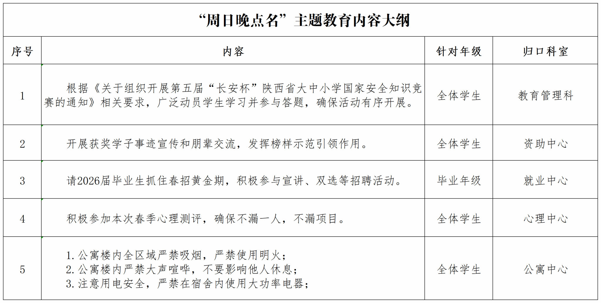 2026年春季学期第一次“周日晚点名”主题教育内容大纲