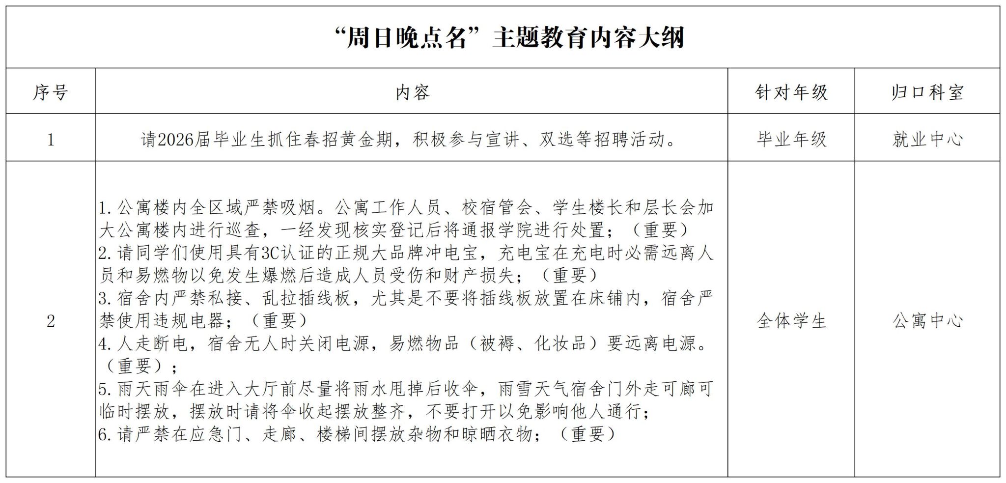 2026年春季学期第四次“周日晚点名”主题教育内容大纲