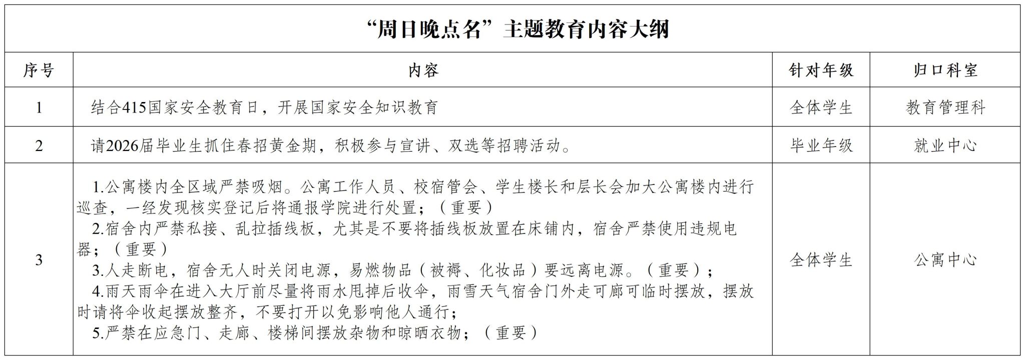 2026年春季学期第六次“周日晚点名”主题教育内容大纲