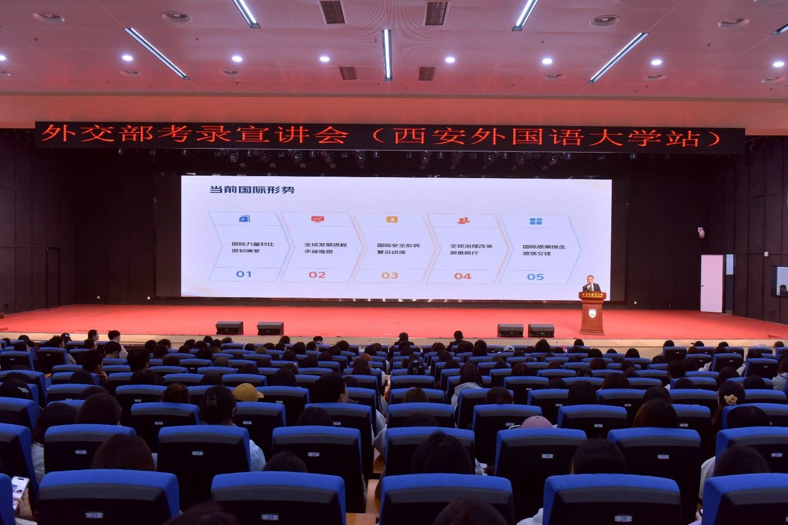 各年级各专业900多名学生参加了宣讲。通过此次考录宣讲,师生们进一步了解了外交人员应具备的能力素质,坚定了为外交事业做贡献的信心和决心。