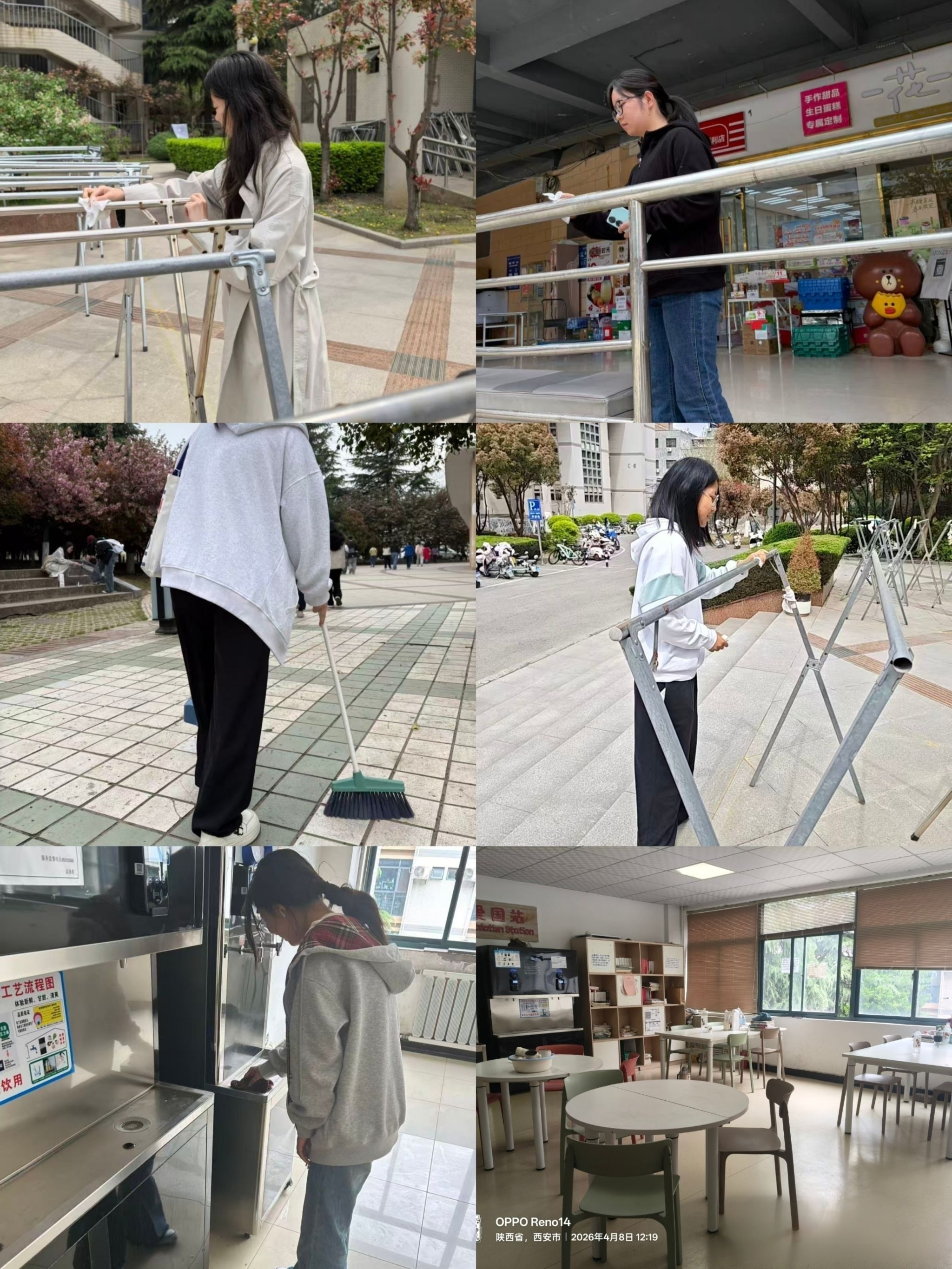 宿舍区域同步开展了内务整理与安全卫生提升行动。同学们对宿舍内部进行了彻底清扫,重点排查用电安全、物品规整、卫生死角等问题。窗明几净、整洁有序的居住环境,不仅提升了生活品质,也进一步培养了学生的责任意识与集体观念。